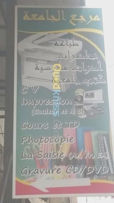 - Impressions format A3 & A4 : Couleurs & (Noir et blanc: A4: 5 DA / A3 : 15 DA ), (Couleur simple: 10 DA , photo: 20 DA ). - Relieurs, Graveur CD - DVD. - Photocopie : A3 & A4 (Noir et