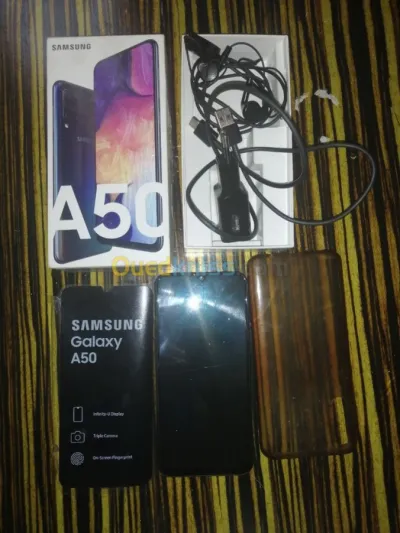 Galaxy A50 4/128 bon état accessoires koulech d'origine chargeur antichoc kit boite fih che9a mtbnch ou tekhbicha
