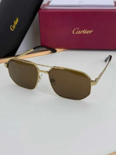 Lunettes solaires Décor C Classique en métal finition dorée lisse, forme rectangulaire et verres photochromic . Dimensions : verres 58 mm, pont 19 mm, branches 145 mm.