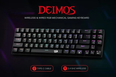 Redragon K599 Wireless/Wired Mechanical Gaming Keyboard up to 60 hours battery life with LED off and 30 hours with LED on, easily switch between wired and wireless mode by plugging in the US