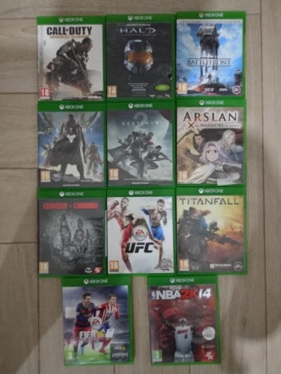 Lots de 11 jeux Xbox en bon état : Call of duty advanced warfare Halo :the master chief collection Titanfal Arslan:the warrior if Legends Destiny 1 Destiny 2 Evolve NBA 2k14 FIFA 16 UFC