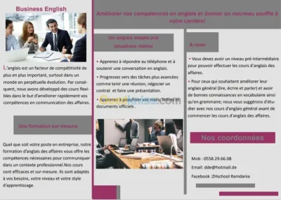 Anglais Général Anglais des affaires Préparation du Toefl Anglais médical Correspondance commerciale anglaise et française français des affaires français général communi