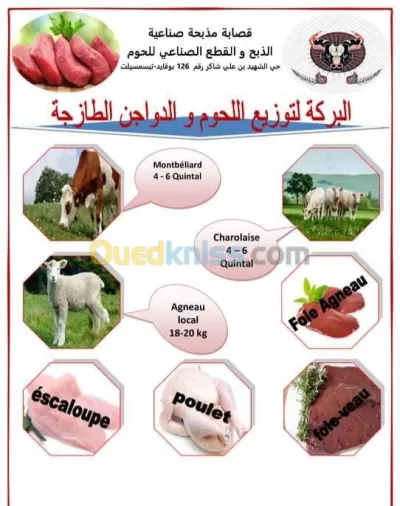 Baraka Fournisseur de viande ( veau , Montbéliardd et charolaise , Agneau, Poulet , Foie, Escaloupe نحن مؤسسة لتوزيع اللحوم بجميع أنواعها ( لحم الع