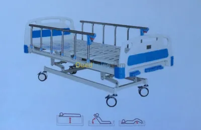Lit d’hôpital ( encore neuf moins d’un an ) Réduction de 50% du prix global. Dimension : 208 x 96 x 48-70 cm. Tête et pied de lit en ABS Tête de lit en acier estompe peint en