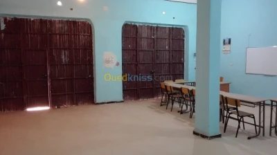 Je pocède 02 locaux à usage commercial de 64 m2 chacun soit 8x8.m Hauteur de 4m Situé au centre ville au bord de la route A 30 m de la ,SAA et 1 km environ de la poste et mobilis et s
