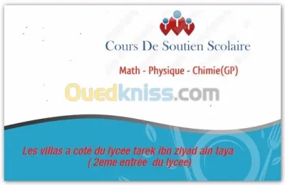 Plus de 18 années d'expérience d'enseignement en cours particuliers , je vous propose : Cours particuliers - Soutien scolaire...a aintaya alger...pour les eleves du lycée programme