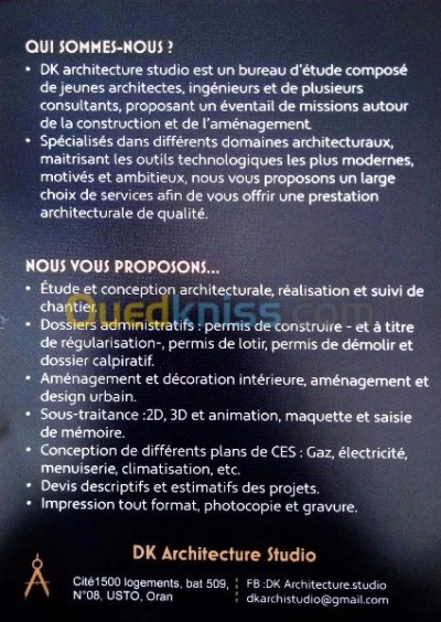 Qui Sommes-Nous? - DK architecture studio est un bureau d'étude composé de jeunes architectes, ingénieurs et de plusieurs consultants, proposant un éventail de missions autour de la c