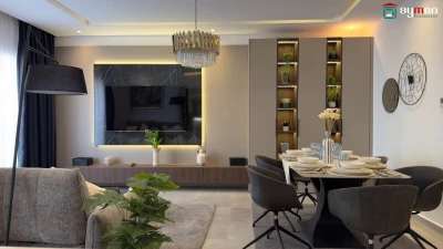 Vends Appartement F4 Meublé de 135,52 m² situé au 10eme étage du Bloc B de la Résidence Séraphinite sise au 11 Rue Benbouzid Mohamed Arezki, Ruisseau – ALGER · Séjour confortabl