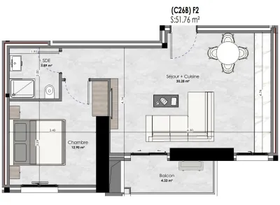 Vends Appartement F2 Meublé de 51,76 m² situé au 10eme étage du Bloc C de la Résidence Séraphinite sise au 11 Rue Benbouzid Mohamed Arezki, Section 14, Ilot 16, Ruisseau – ALGER �