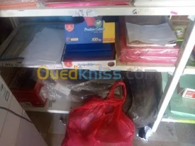 Vente une librairie compléte contenant : 1/ 02 deux présentoirs murals en aluminium 2/ 01 un présentoir en bois 3/ 01 un photocopieur avec table 4/ des articles scolaires 5/ des ar