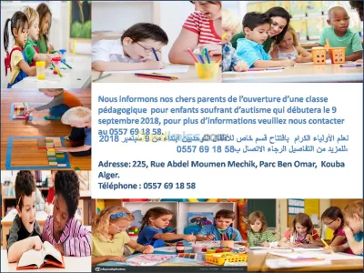 MATERNELLE JE TED A SORTIR SITUÉE A AMARA CHERAGA ALGER, SPECIALISÉE DANS LA PRISE EN CHARGE D'ENFANTS EN DIFFICULTES (AUTISTES)