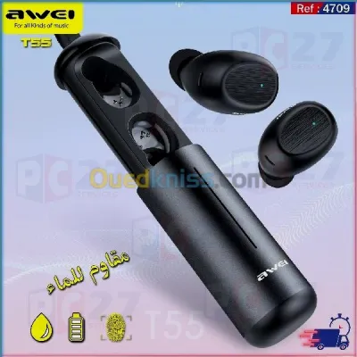 Kit Main Libre Bluetooth awei T55 مقاوم للماء اسم المتجر: Pc27 العنوان: mostaganem ساعات العمل: 24/24 التوصيل 48 ولايى السعر يخت