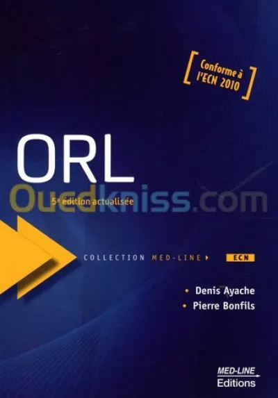 Titre : ORL : Conforme à l'ECN 2010 Auteur : Denis Ayache Editeur : Med-Line Année : 2010 Théme : Médecine Et Paramédical Sous-théme : Orl & Stomatologie ISBN : 9782846781060
