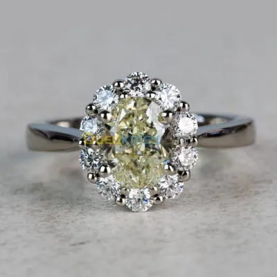 Bague de fiançailles diamant ovale halo floral d'été. Détails: - Diamant ovale de 1,60 ctw carat - Certificat: EGL - Bague de fiançailles diamant en or blanc 18 carats Fabriqué