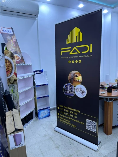 Rollup Banner 85 x 200 cm avec impression ✅ Prix: 13 800 DA ✅ Aucune quantité minimum ✅ Paiements flexibles : chèque, virement, espèces ✅ Livraison rapide ✅ Demande de devis s