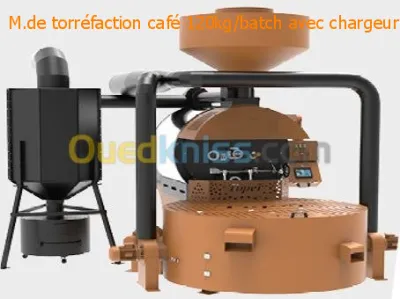 Machine De Torréfaction De Café 120kg/Batch Avec Chargeur : -Capacité de rotation 120kg/cycle -Capacité de production 480 kg/H -Energie Gaz -Dimensions : 409×402×343cm P