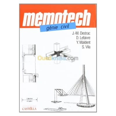 Titre : Mémotech de génie civil : Du Bac Pro aux Ecoles d'ingénieurs en Génie civil Auteur : Jean-Marc Destrac Editeur : Casteilla Année : 2011 Théme : Sciences De L'Ingénieur Sous-th