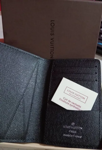 Organisateur de poche Louis Vuitton en cuir épi noir. Ce petit organiseur permet de ranger facilement cartes de crédit, factures et reçus.