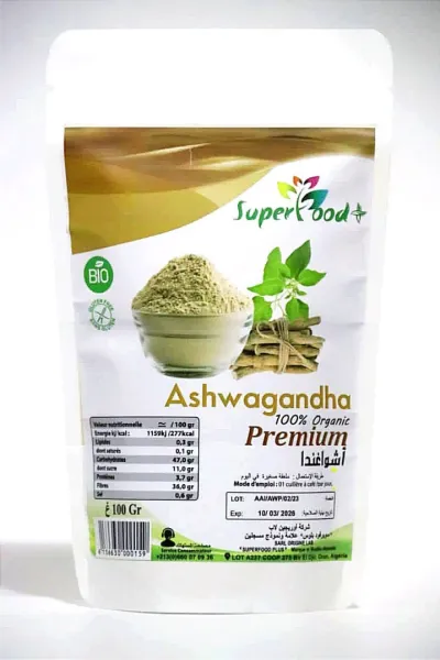 * Ashwagandha 100% naturelle certifié Bio * L'ashwagandha a des propriétés adaptogènes. Elle aide à maintenir les capacités physiques et intellectuelles en cas de faiblesse, d'épuise