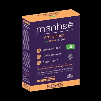 ManhaéArticulations BIO: Complément alimentaire à base d’extraits de plantes issus de l’agriculture biologique Information nutritionnelle par comprimé : Extrait d'harpagophytum : 150