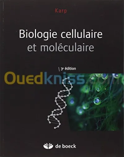 Titre : Biologie cellulaire et moléculaire Auteur : Karp Editeur : De Boeck Année : 2015 Théme : Sciences Sous-théme : Biologie ISBN : 9782804160111