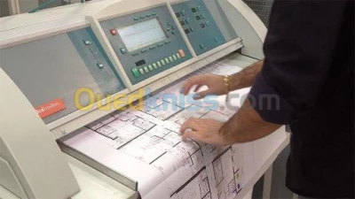 tirage de plan Sur place Avec possibilité de livraison à domicile pour les bureaux d'études : FORMAT A0 et plus: - Photocopie des plans N/B ( 90 DA / ML) - Impression N/B des pla
