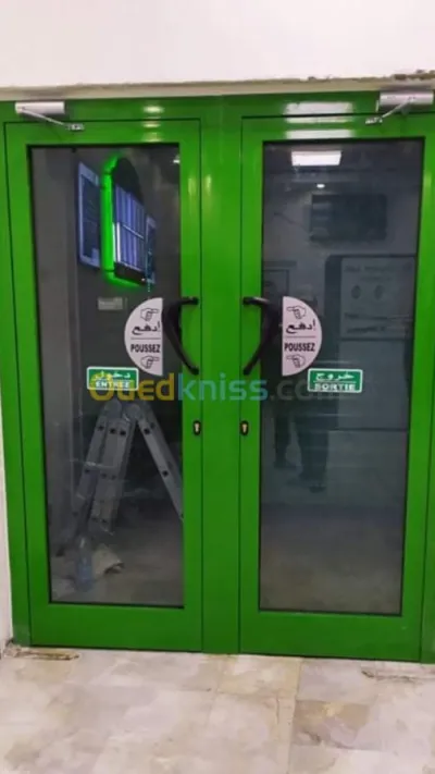 ENTREPRISE DE ALLUMNUM BLINDÉ SÉRIE 75 AVEC VERRE BLINDÉ EST SAS BLINDÉ ENTRÉ SORTIE AVEC SYSTÈME ÉLECTRIQUE EST FAÇADE BLINDÉ EST PORTE DE SECOURS AVEC BARRÉ ANTI PANIQUE LE VERRE
