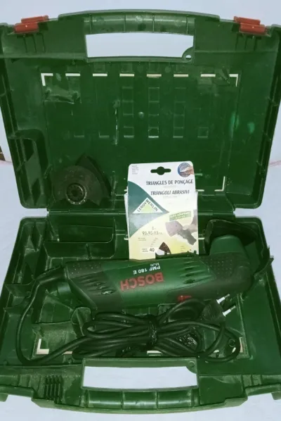 Perceuse à percussion filaire très bonne état, charbon : Makita hp 2030 ramené de France. + outil multifonction, coupe , lime, ponce. Modèle : Titan 300 Ponceuse Bosch excellent é