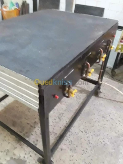 Fabrication des grandes plaques chauffantes sur mesure et vente d'une grande plaque chauffante en fonte, équipée de 04 bruleurs de la marque " DELONGHI " : Longueur : 1m10 Largeur : 0.