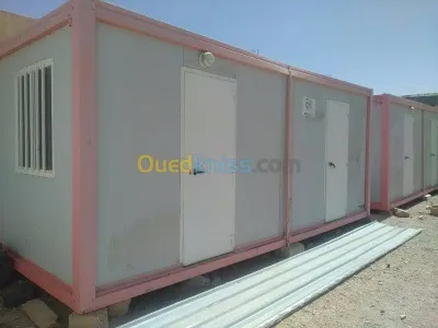 On construit tout types des chalets Annonce : Cabines sahariennes 6x3 chambres séparées Panneau sandwich 40mm Structure en tube carré 90mm Revêtement de sol en type gerflex Portes en