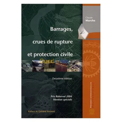 Titre : Barrages crues et protection civile 2e édition (58) Auteur : Claude Marche Editeur : PIP Année : 2008 Théme : Sciences De L'Ingénieur Sous-théme : Génie Civil Btp ISBN : 978255