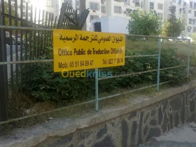 Bureau de Traduction (arabe- français-anglais) sis à Hussein Dey ( l'étoile - 01 rue Tahar ben Snoussi -arrêt de tramway Tripoli Mosquée) offre ses services de traduction assermentée d