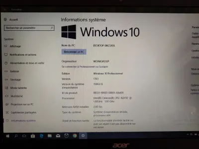 Pc Acer ES 15 en bon état - processeur intel celeron - Ram2gb - Disque dur 500 gb hdd - Windows 10 Lieu: el kennar, jijel