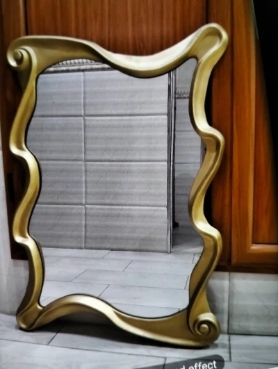 Mirroir doré peut servir comme mirroir pour console ou pour décoration au salon chambre où vouloir. Moderne!