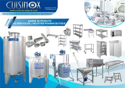 Description SARL CUISINOX, c'est aussi l'industrie pharmaceutique ✅ Produits de qualité ✅ Des prix abordables ✅ Produits standard ou sur mesure ✅ Produits disponibles --------------