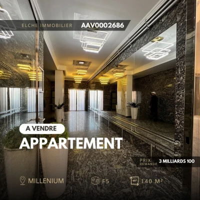 🔶 Réf : AAV0002686 🏡 À VENDRE : Appartement F5 situe à millenium, ORAN. •🔺 Superficie : 140 m². •🔺Équipements : cuisine s équipée, eau💧, bach d'eau, électricité�