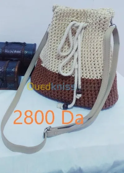salam alikom je met en vente des sac à mains , pochette crocheté , sac à dos , pochette soirée pour femmes et enfants . le travail en question se fait au crochet macramé à