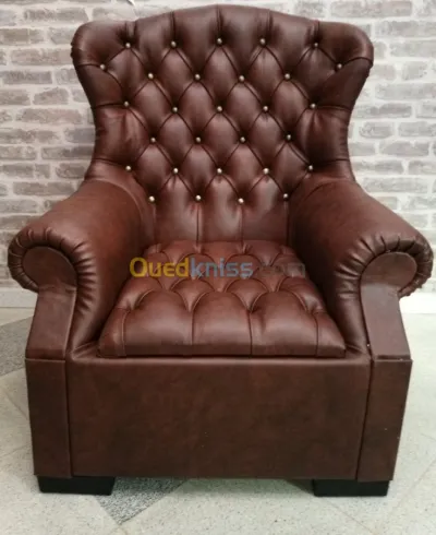 Pour cause de demenagement vend salon neuf de 6 places en cuir chesterfield achete chez metropole du meuble cheraga. Opportunite a saisir. Prix 600.000 da