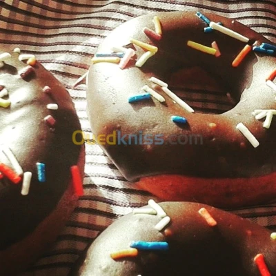 Salam , je prepare des bonne doughnuts taille grande avec tous les gout chocolate caramel vanillefraise et citron bien decoder et pour les coffee shop ,café ,cafeteria et pour les revendeur