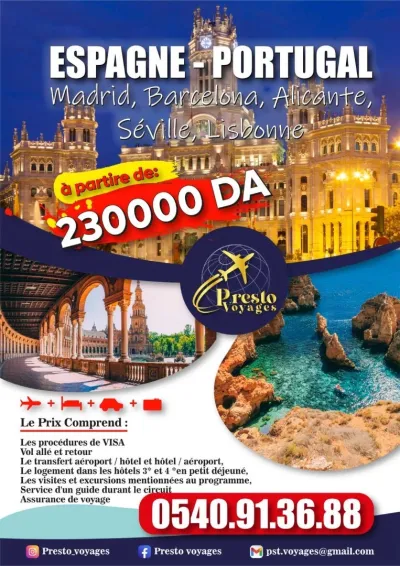Bonjour Bristol voyages vous propose un voyage organisée de 10 jour le prix est a partir de 341 999 dzd par personne *Inclus dans le séjour : Hebergement + billet davion (international e