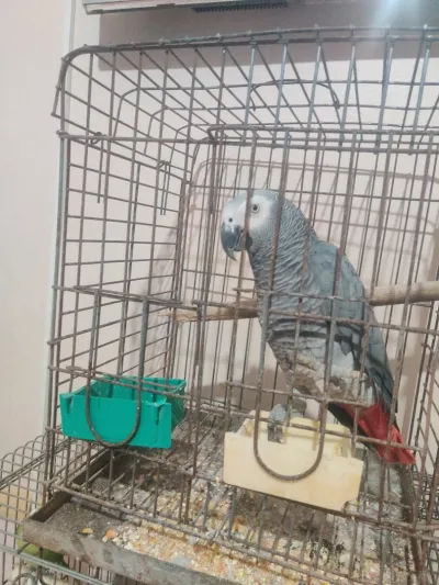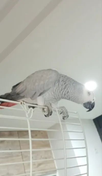très beau perroquet gris du Gabon qui parle bien, 4 ans en cage, grande taille c'est une femelle , déjà fait une couvée