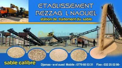 Nous sommes ETS REZZAG NAOUEL traitement et classigication de sable,a Djamaa W EL OUED; nous proposons pour nos clients: .Sable 0/3 à béton hydraulique module de finesse 2.25 Sable tros