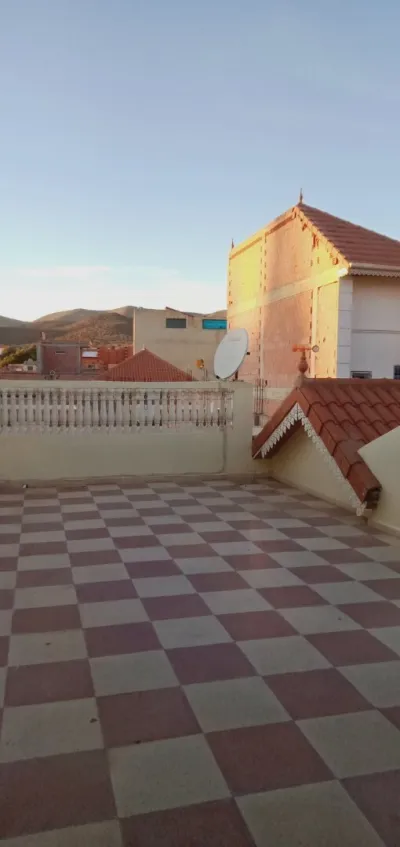 À vendre maison (R + 1+ terrasse) ,superf :120 m2 , fini à 70 % avec acte situé à route d’el Izar. à Khenchela. Descrition :a/ Rdc: sallon + cuisine+ + sanitaire b/ 03 chambres +