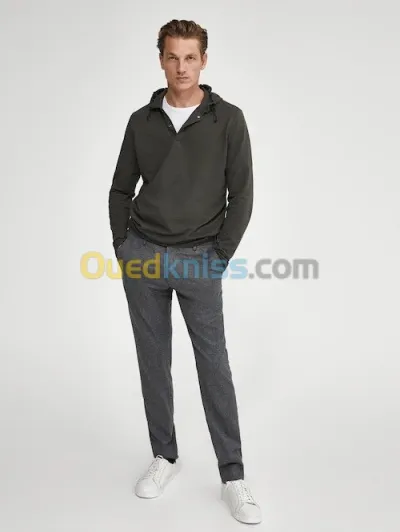 Promotion collection massimo dutti automne 2021 pull a capuchon couleur vert militaire et bleu existe en taille s m l xl xxl 5900 dzd prix initiale 59 euro