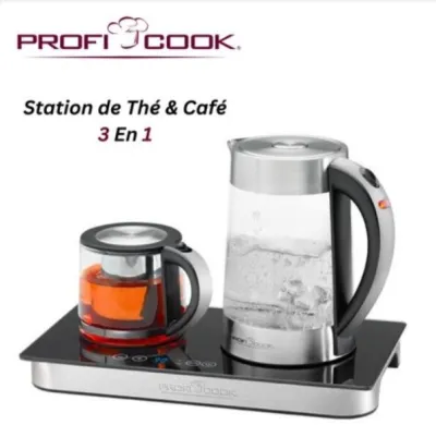 Proficook station de thé/café 3en1 avec bouilloire et carafe en verre panneau de commande tactile
