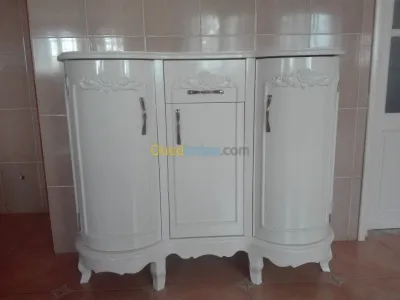 meuble : dimontion 120*0,40*1 3 porte avec un tiroir sculpté avec des motifs finitions: laqué blanc cassé