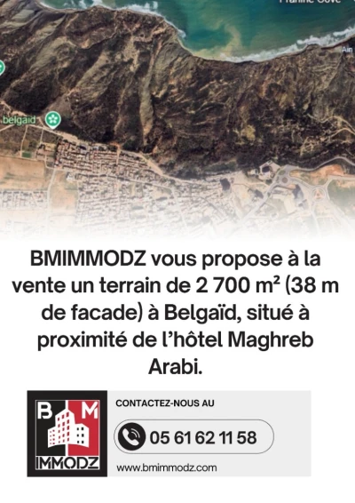 BMIMMODZ vous propose à la vente un terrain de 2 700 m² à Belgaïd, situé à proximité de l’hôtel Maghreb Arabi. Bénéficiant de deux façades, dont une principale de 38 mètres, ce
