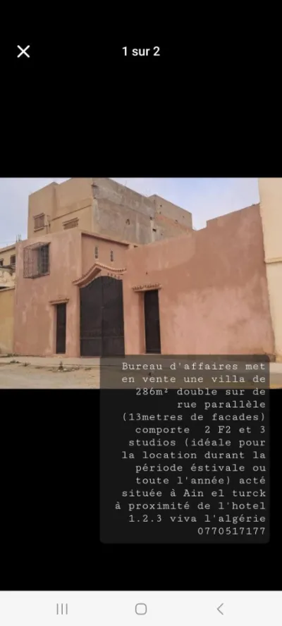 ¨bureau d'affaire ain benian¨ mes une petite villa en vente son vis a visà oued tèrfa -01- DRARIA supérficie : 180 m2 (100 m2 batis et le reste : jardin ) papiers : acte et
