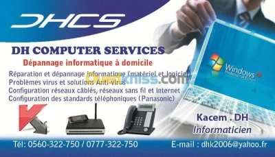 Salam,Informaticien diplômé de DEUA en informatique, assure les interventions suivante à domicile : * Systèmes Exploitation : Windows xp, Vista, 7, 2008 Server * Maintenance Informati