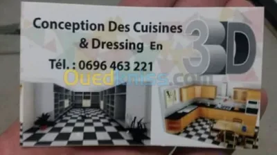 conception schema de cuisines , dressing, plaquard , en 3 dimension pendant meme pas 1 heures 1plan / 2000da endroit ; baba hassen